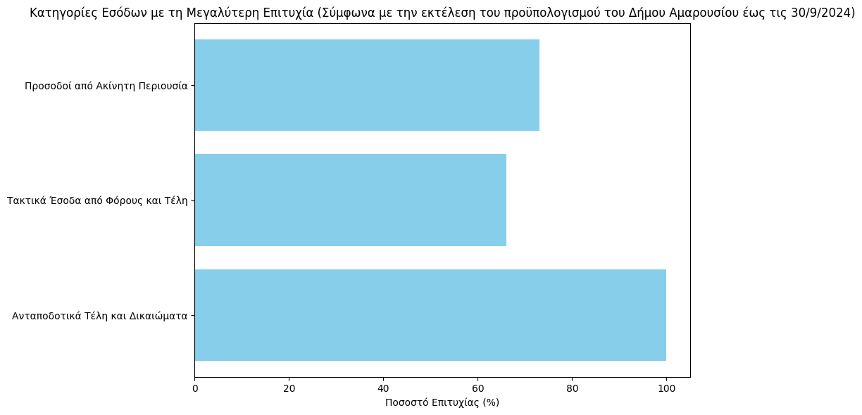 2. Έσοδα από Ανταποδοτικά Τέλη και Δικαιώματα: Κοντά στο 100%