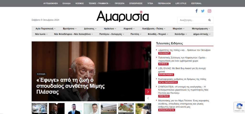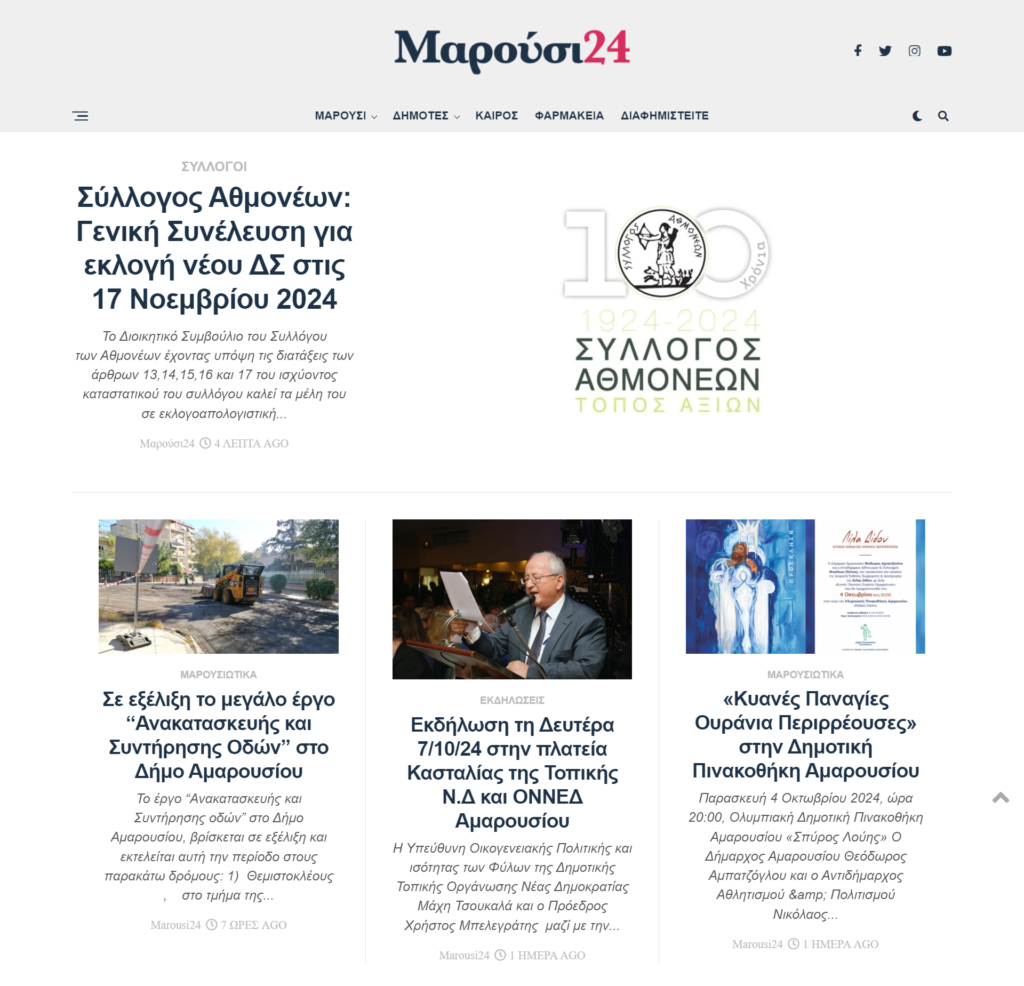 Οι κύριες ειδήσεις από την 1η σελίδα του website “Μαρούσι 24” είναι: