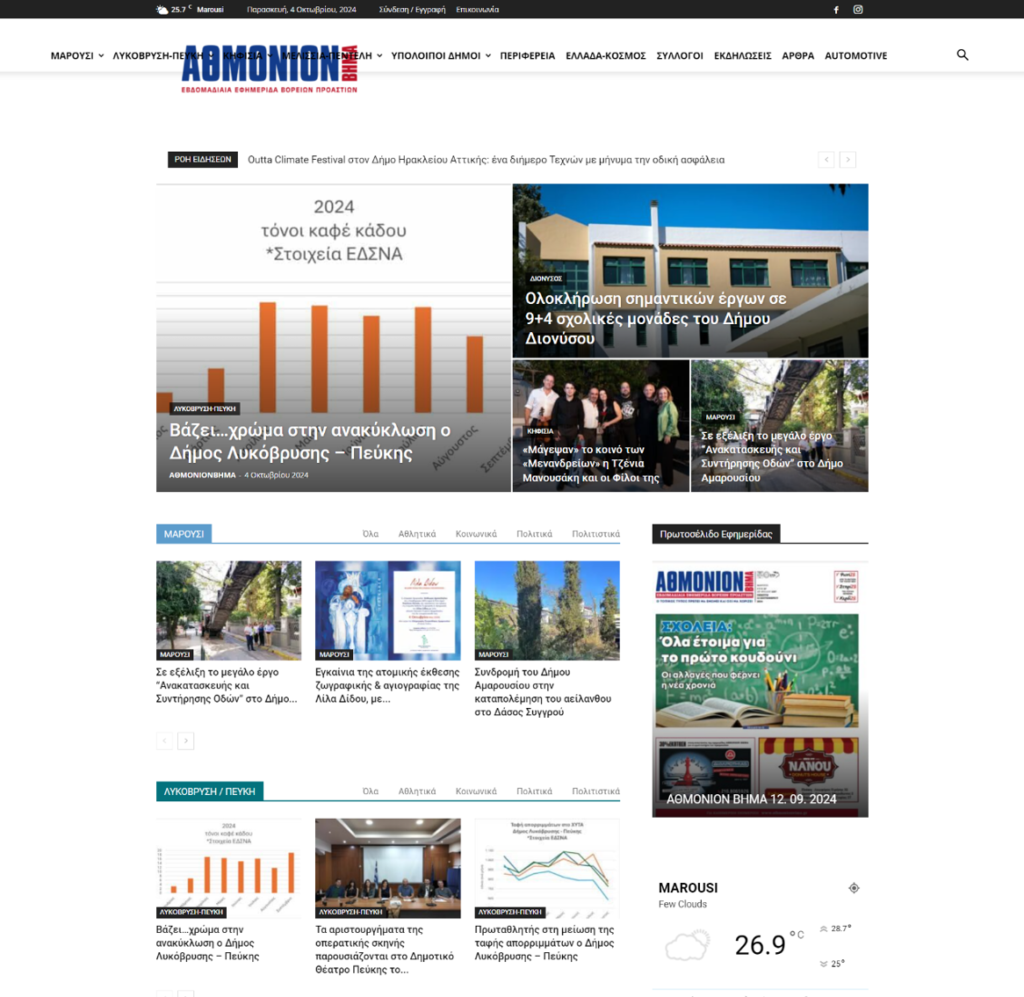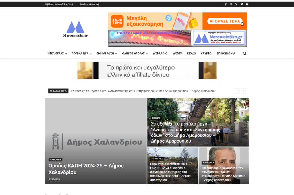Οι κύριες ειδήσεις από την 1η σελίδα του website Maroussiotika.gr είναι: